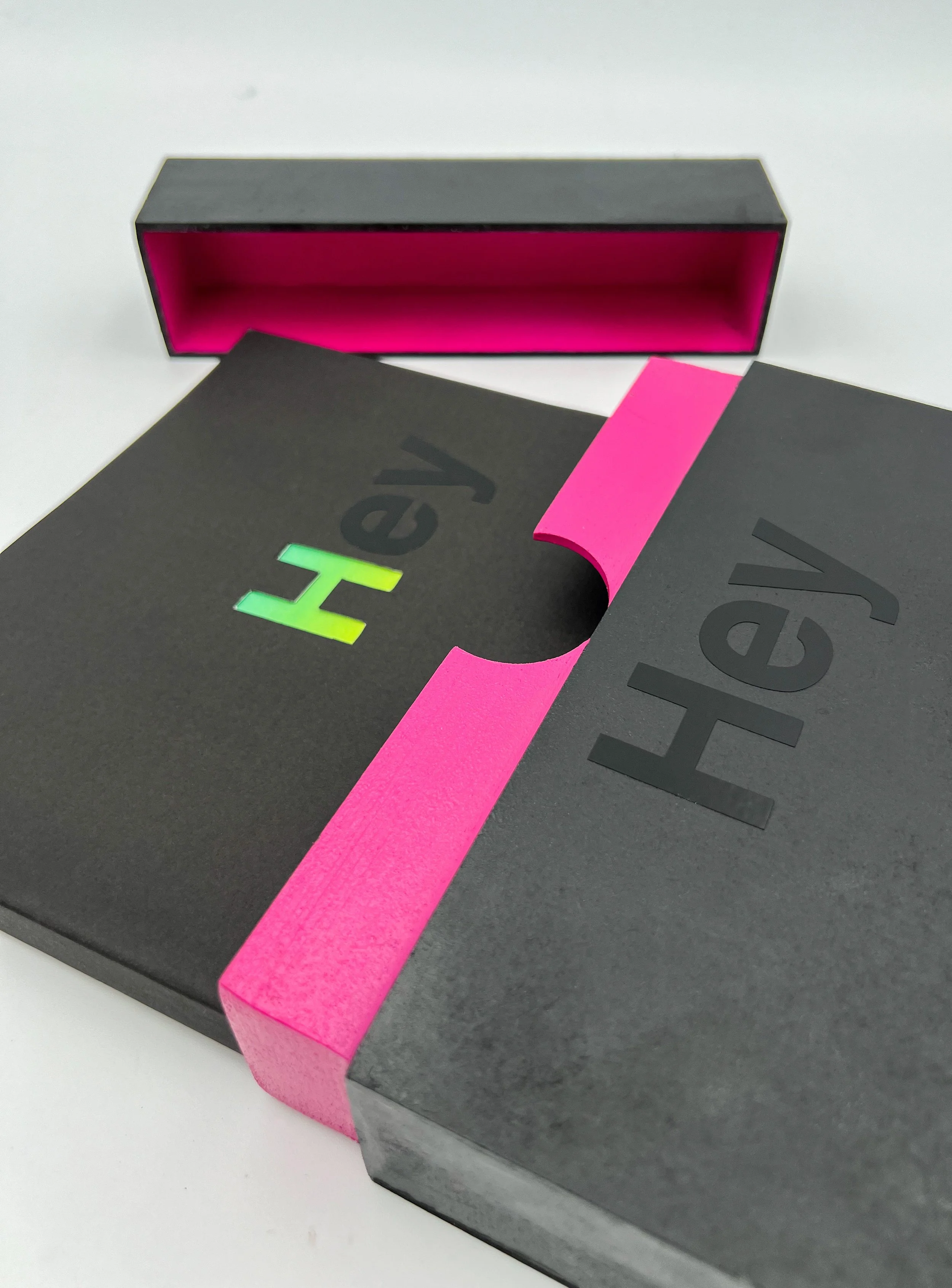 Both the book and its enclosure were designed to embody Hey Studio’s vibrant aesthetic, using bold color combinations to reflect the spirit of the work inside. Every detail was considered to ensure that the design not only celebrates the studio’s identity but also feels like an extension of its creative vision.